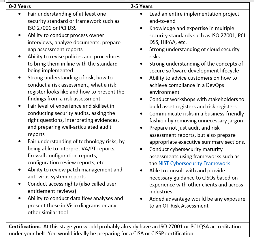 If you have spent the first two years of your career in the compliance and advisory sub-domain then you have most likely done 20–30 engagements covering different frameworks such as ISO 27001:2013, HIPAA, PCI DSS, etc. It may be the case that you have joined a team or a company that specializes in one of these and most of your experience now is restricted to that domain, but now would be the time to expand your horizons.