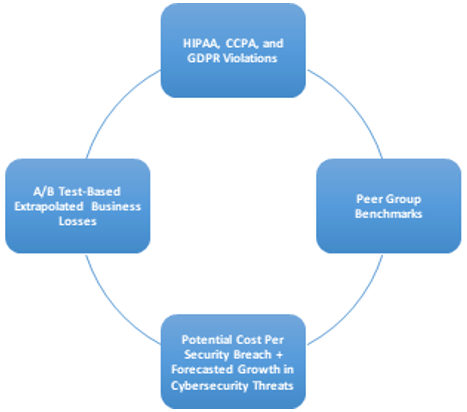 Each HIPAA violation costs $50,000, while each CCPA violation can cost $2500-$7500. GDPR violations can lead to a net fine of EUR 20 million or 4% of global revenues. Hence, any Cyber Security investment made to avoid this has value in terms of the penalties avoided.