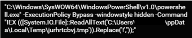 The JavaScript file de-obfuscates the PowerShell script and saves it in the temp directory.