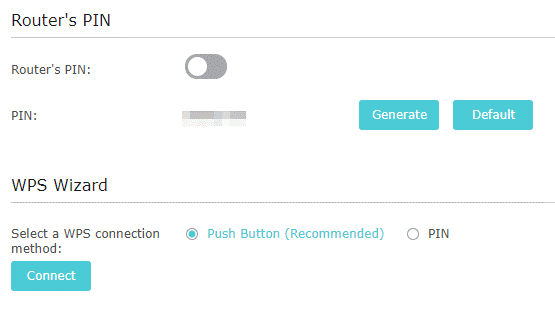 - If the router has a WPS button, turn off the WPS Router Pin in the settings
