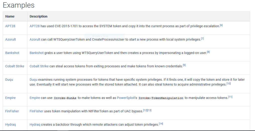 Here are some examples of APT’s and tools which uses this technique taken from MITRE: