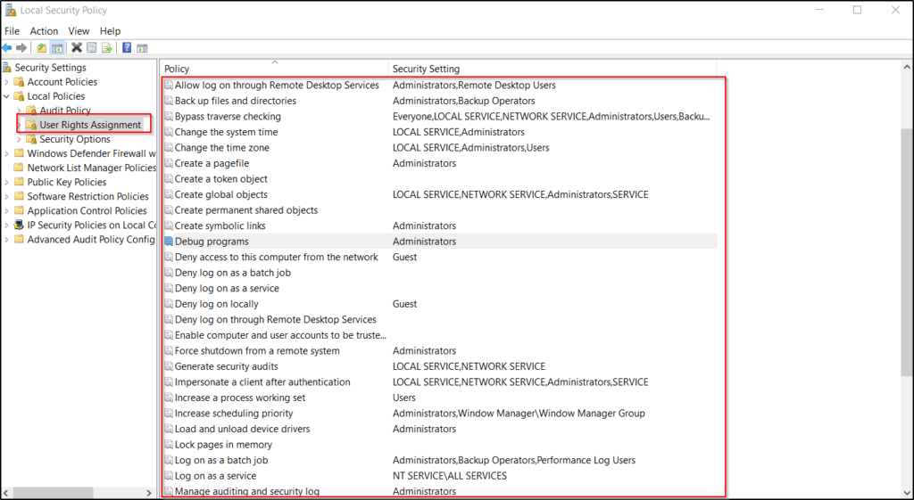 Similarly, in the Windows operating system, a user is assigned some privileges to perform system-related activities by the Administrator. Some privileges are assigned to the user by default by the OS and some privileges can be assigned to the user locally by the Administrator using the Local Security Policy Settings.