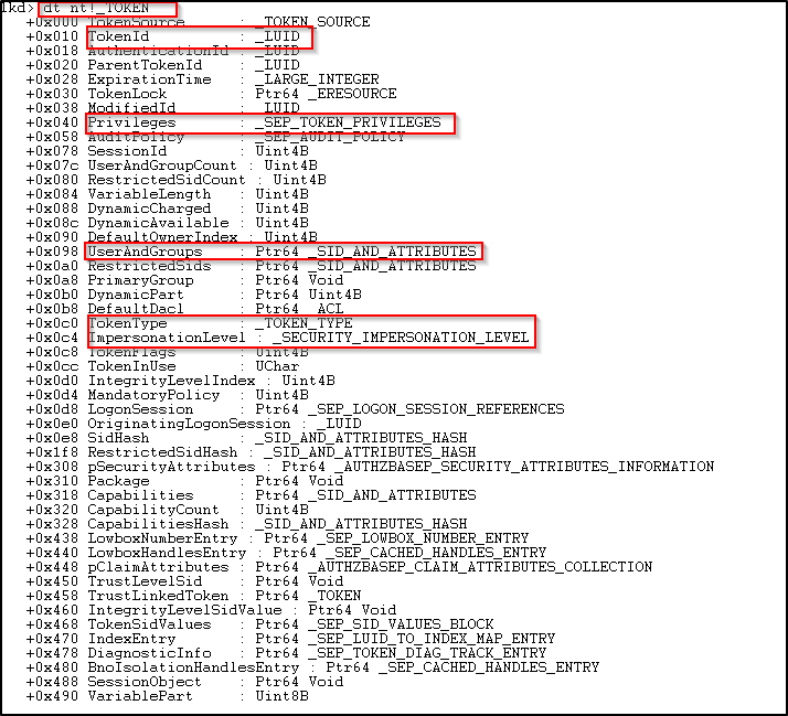 Let’s look at some of the data structures inside the TOKEN structure.