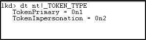 TOKEN_TYPE is an enumeration which defines whether the token type is Primary or Impersonation (more on this later in the series).